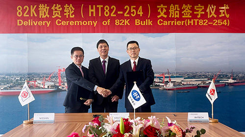 2024年4月10日,韩通为日本Nisshin船东建造的新批次第十艘82000吨散货轮 “HUDSON TRADER”(船体号:HT82-254)顺利签字交付。