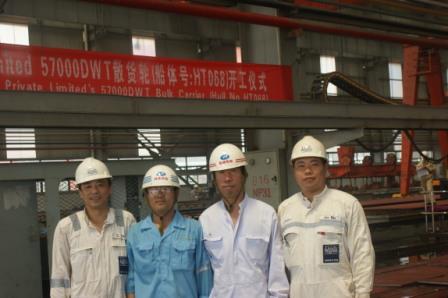 2010年6月30日上午10:00,我司为DASIN建造的57000吨散货轮(船体号:HT068)在我司新船体车间举行开工仪式,该船入LR船级社。韩通重工副总经理李继念与船东代表参加了该仪式。