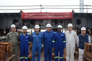 我司为日本船东NISSHIN建造的38800DWT散货轮(船体号:HT388-138)于2014年11月25日在我司3号船台举行了上台仪式,该船入BV船级社。董继红总经理助理及船东、船检参加该仪式。